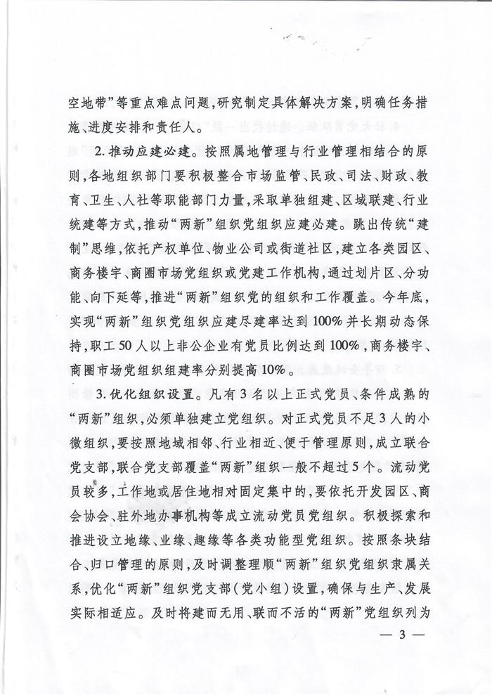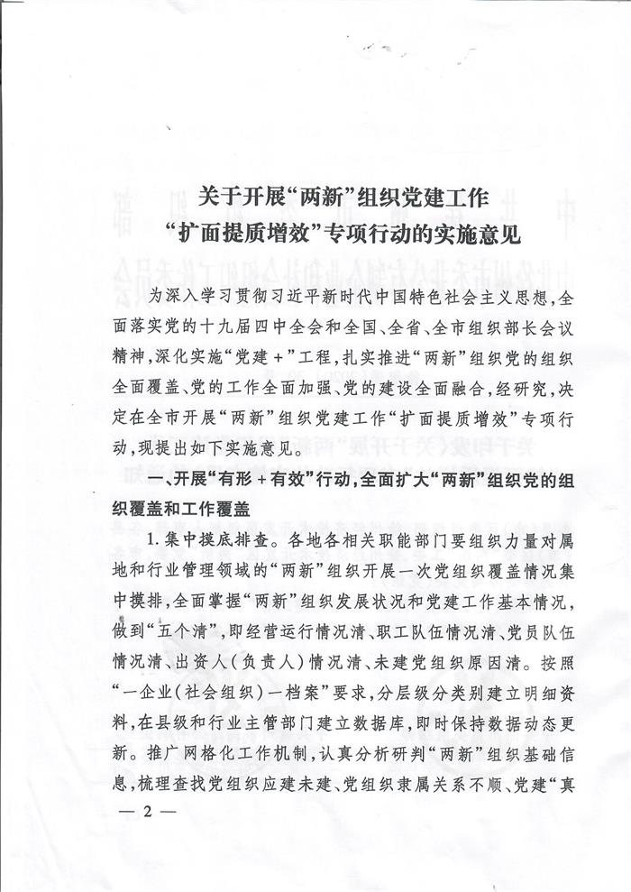 关于印发《关于开展“两新”组织党建工作“扩面提质增效”专项行动的实施意见》的通知