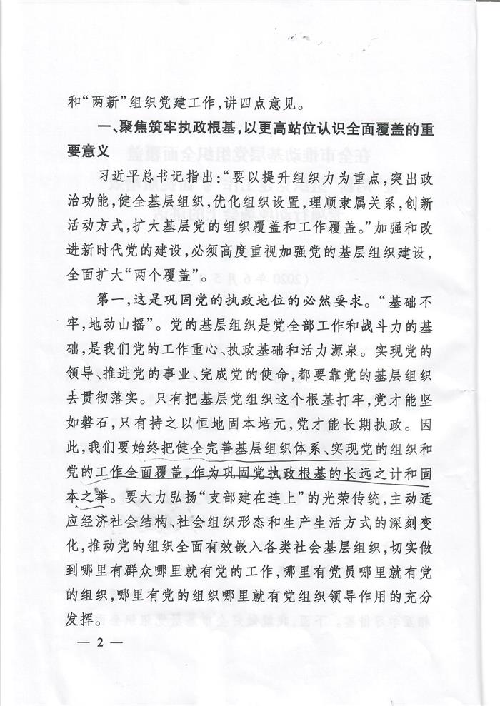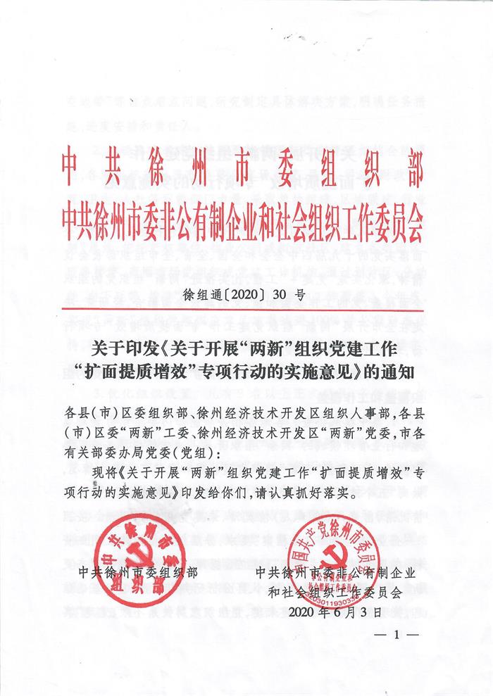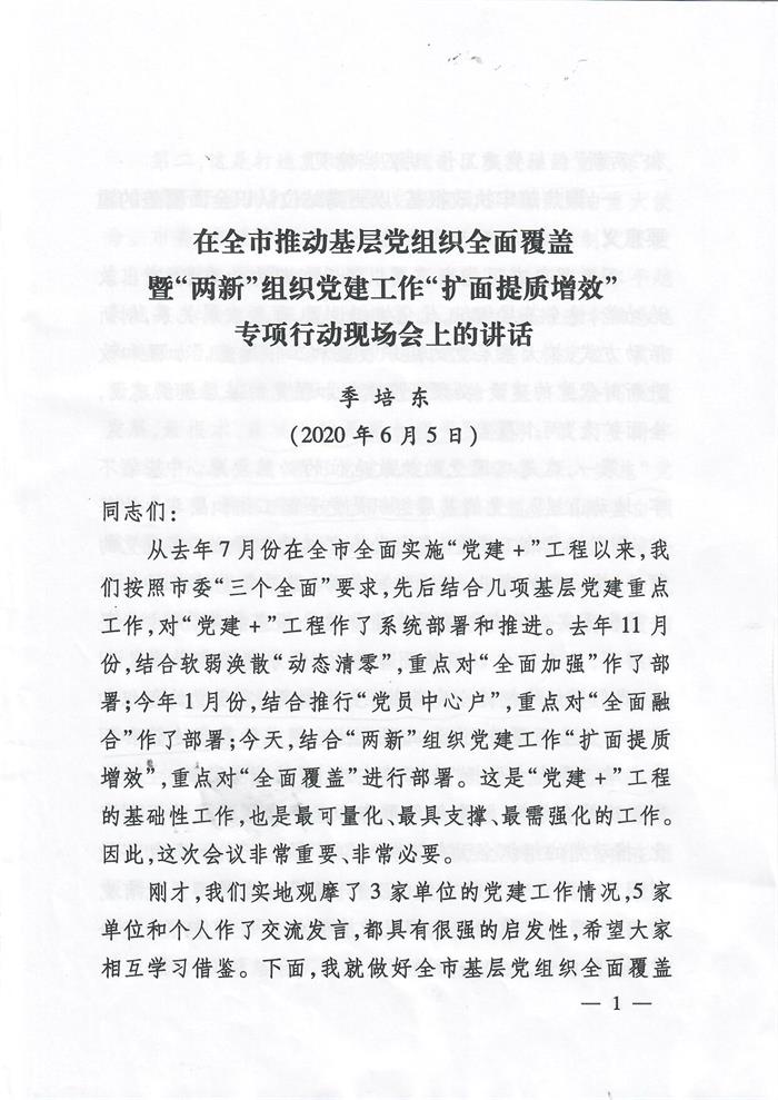 2020年6月5日下午,集团党委领导代表参加了全市推动基层党组织全面覆盖暨“两新”组织党建工作“扩面提质增效”专项行动现场会。会上深刻学习了市委组织部、季培东部长讲话文件精神。现把两份文件下发给你们,并认真学习贯彻文件精神。