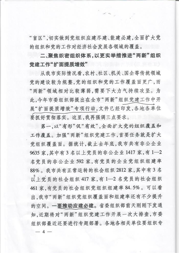 在全市推动基层党组织全面覆盖暨“两新”组织党建工作“扩面提质增效”专项行动现场会上的讲话